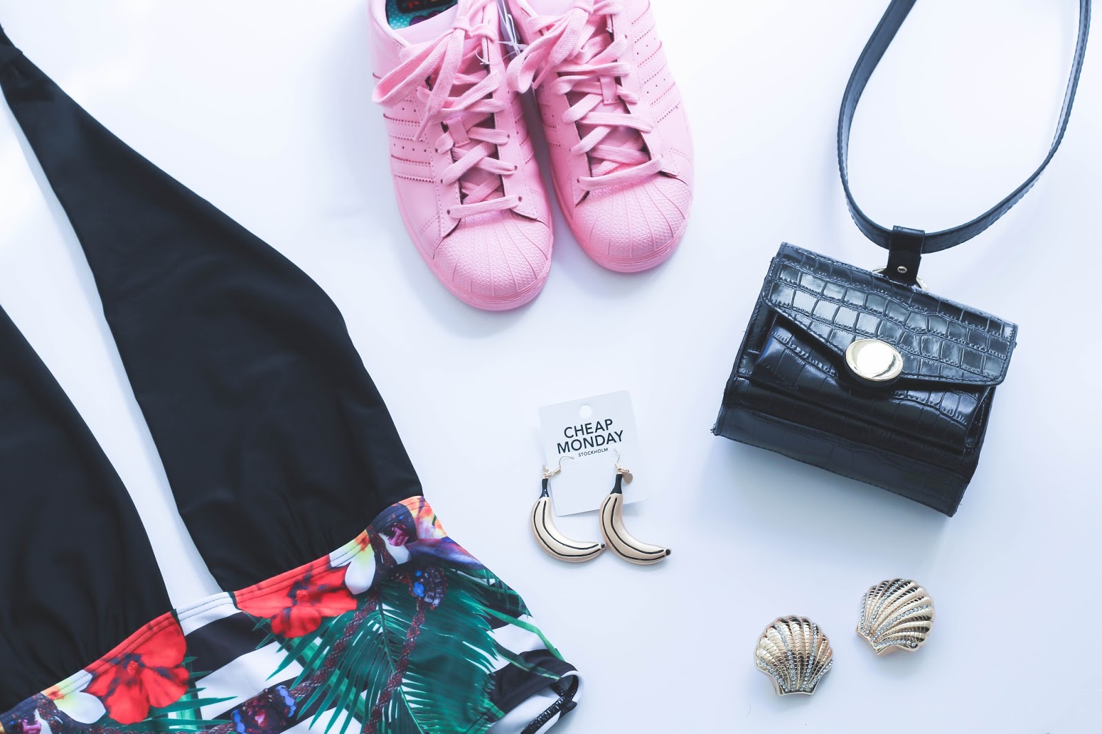 Swimsuit . ASOS | Sneakers . Adidas Originals Supercolor | Banana Earrings . Cheap Monday |